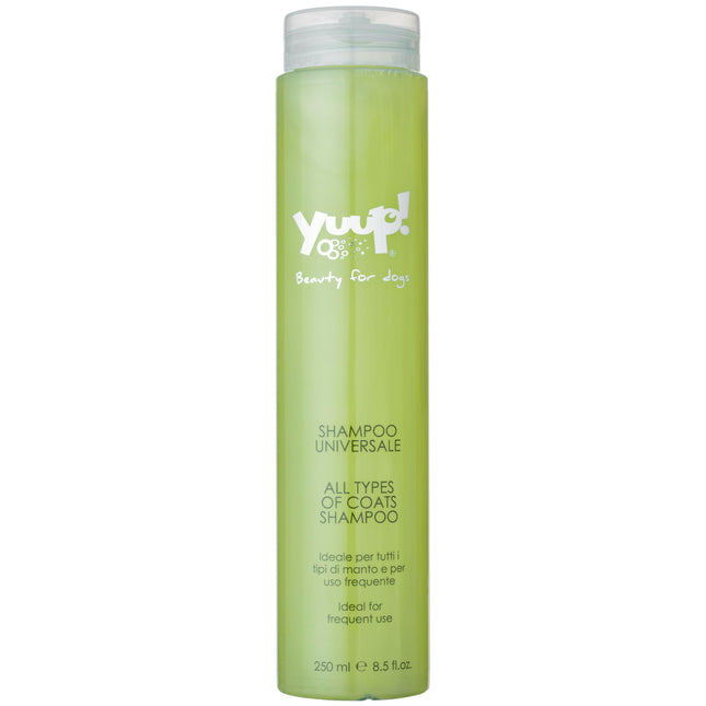 Yuup! Home All Type of Coat Shampoo is a universal cleansing shampoo designed for regular use on dogs and cats of all coat types and colors. It contains gentle and natural plant-based ingredients that cleanse and care for the fur. Aloe vera extract, white willow, and propolis regulate sebum secretion and have disinfecting, cleansing, and refreshing properties. After use, the coat is clean, beautiful, and fragrant. It is easier to comb and looks healthy. The product is ready to use, without dilution. How to use: Apply the shampoo to damp fur. Massage thoroughly and wait a few minutes. Rinse with lukewarm water. About the brand: Yuup! is an Italian brand of exceptional pet cosmetics, increasingly recognized and appreciated by groomers, breeders, and customers worldwide. It has three product lines. Yuup! Professional - a professional line created for groomers, breeders, and those seeking the best grooming results. The cosmetics in this group are very effective due to their concentration. Yuup! Home - a home line, ideal for pet owners looking for high-quality cosmetics at an affordable price. Yuup! Fashion - professional finishing products, indispensable during exhibitions or shows. Here you will find perfumes, shine sprays, and other essential preparations. Yuup! SPA - a range of luxurious products designed for pampering and providing extraordinary pleasure during the baths of our four-legged friends. Developed based on the best human cosmetics in the SPA field.
