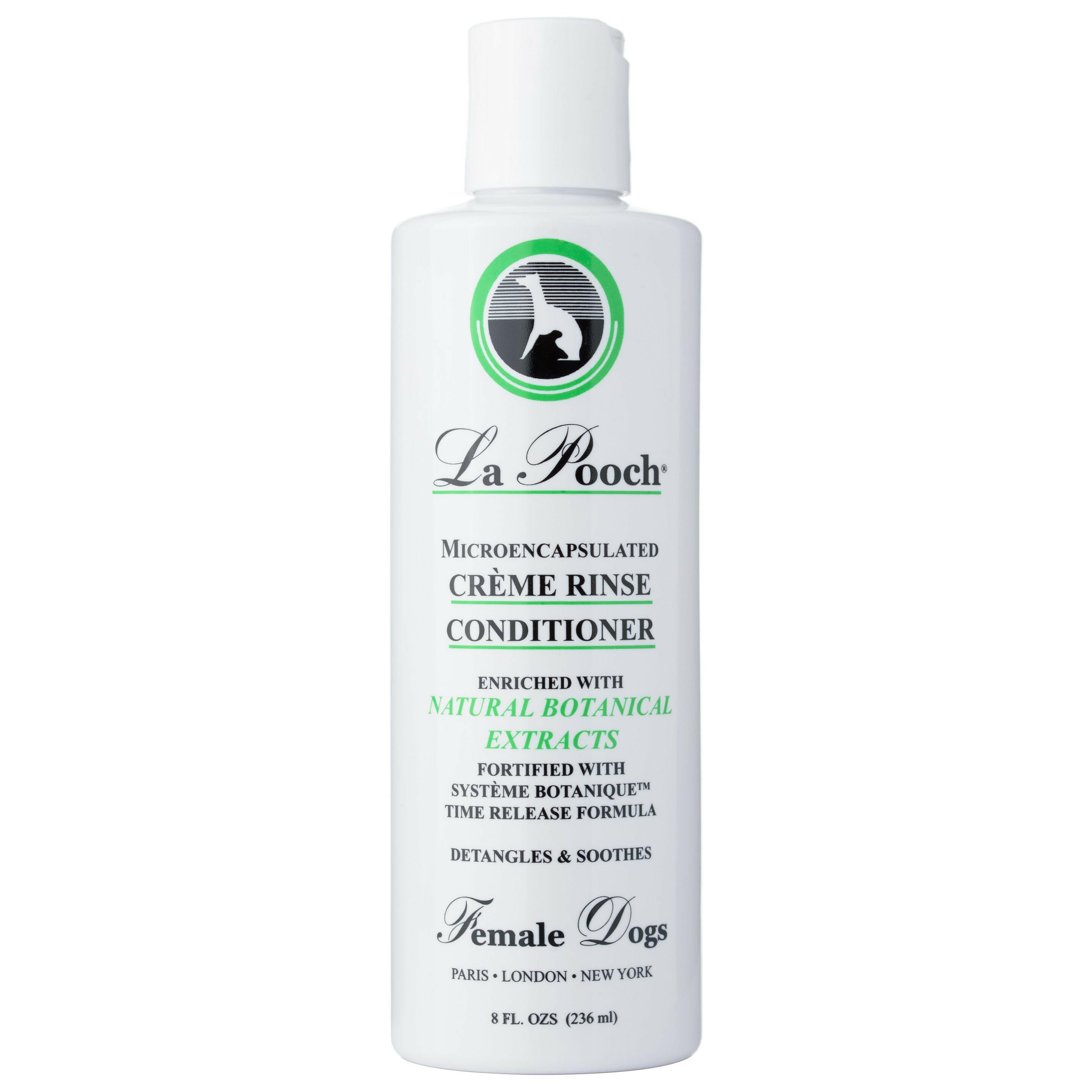 Les Poochs La Creme Rinse Conditioner on luksuslik, kreemjas karvade palsam emastele koertele. See sisaldab looduslikke taimeekstrakte: merevetikad, mesilaspiim, õhtune priimula, aprikoosiekstrakt ja Šveitsi kummel. Nende olemasolu rahustab ja ravib nahaprobleeme nagu kuivus ja ärritus. Palsamis olevad valgud ja provitamiin B5 taastavad loomuliku sära ja tekstuuri, toidavad ja niisutavad karvkatet. Soovitatav pikkade karvadega koertele, kellel on probleeme kuiva, tuhmide ja sassis karvadega. Pärast vannitamist muutub karvkate pehmeks, taastab oma loomuliku sära ega lähe sassi. Palsamil on kaunis, kauakestev ja naiselik lõhn. Kontsentratsioon 1:4.