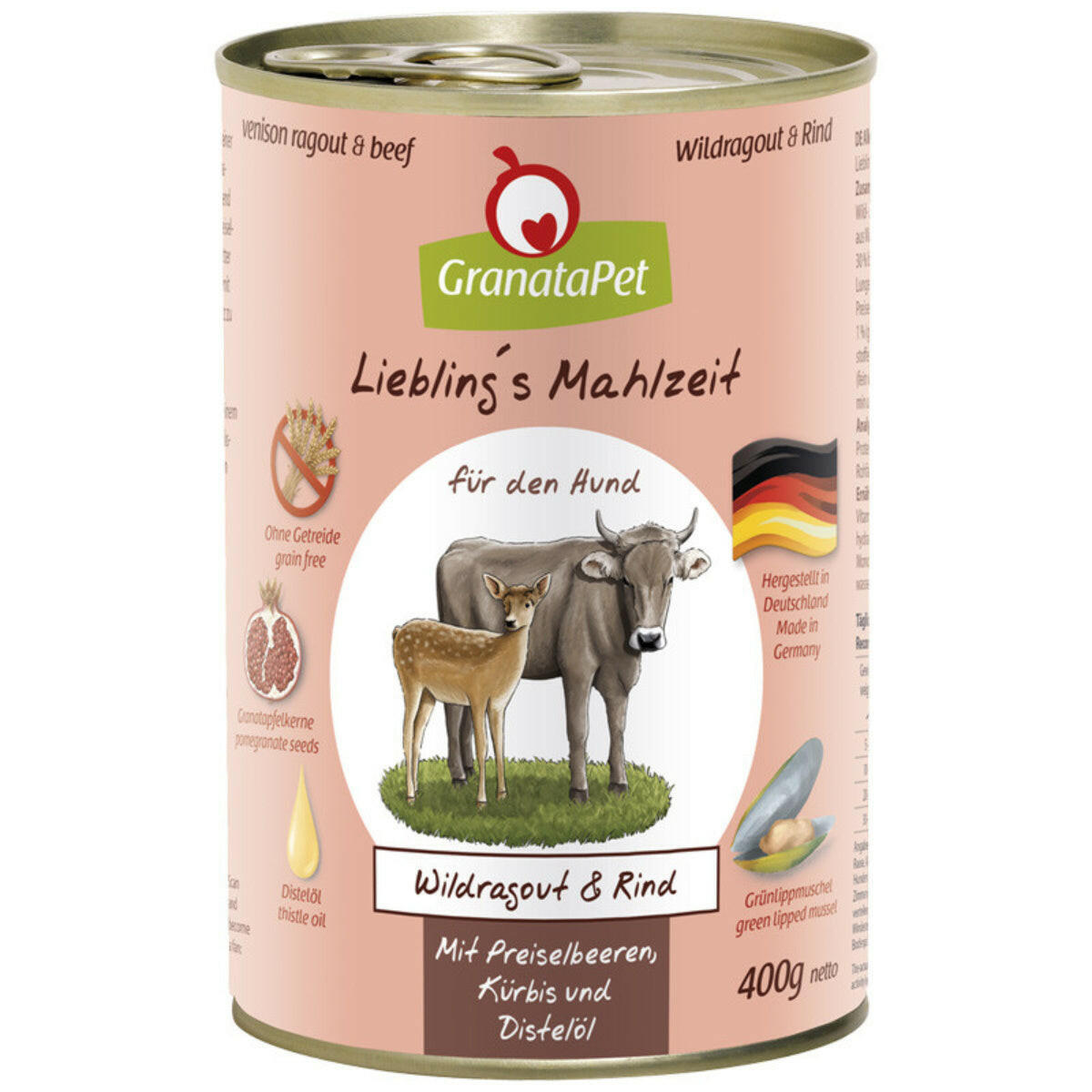 GranataPet Venison Ragout & Beef - grain-free wet dog food, venison and beef.